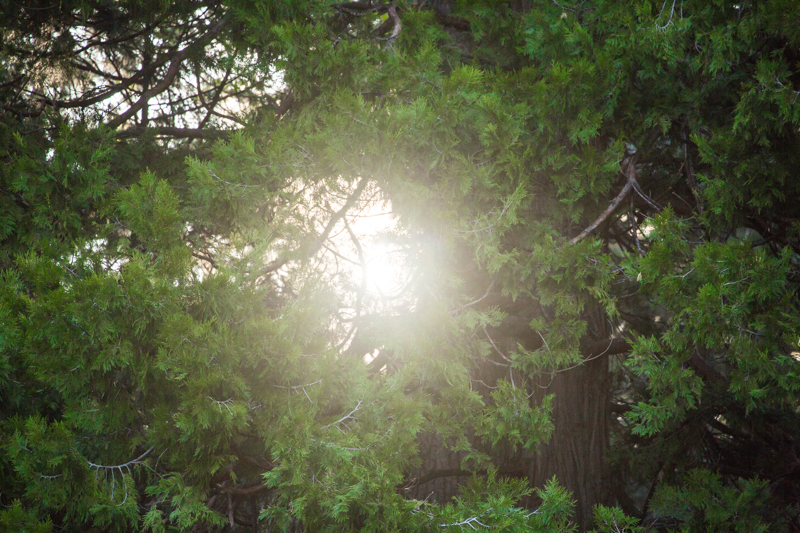 Through the trees.